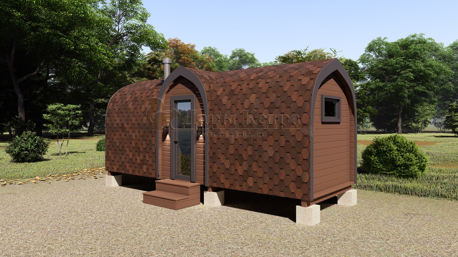 Баня-бочка «Викинг» — это современный взгляд на традиционную баню, выполненный в оригинальном скандинавском стиле. Благодаря высокому корпусу и прямым углам основания внутри создаётся просторное и удобное пространство, а округлая форма потолка обеспечивает быстрый прогрев и равномерную циркуляцию пара.