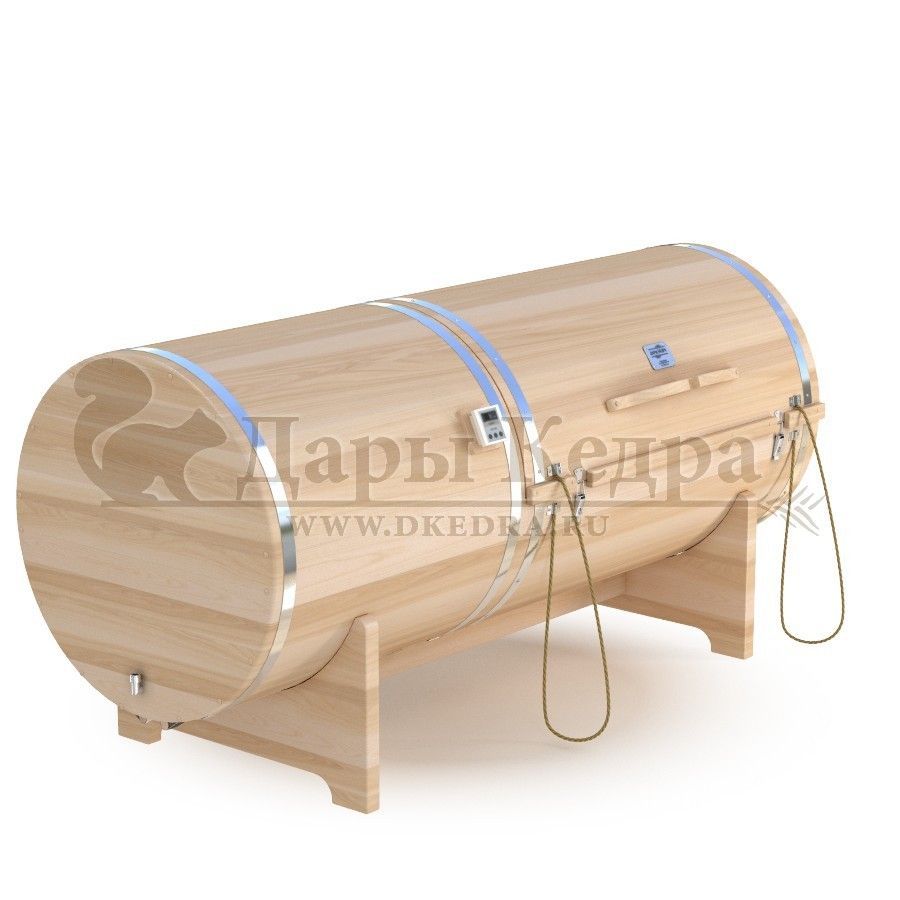 Кедровая бочка (фитобочка) горизонтальная «Двухрежимная Профессиональная» Горизонтальная двухрежимная фитобочка из кедра может быть использована как инфракрасная сауна и парная. Карбоновые излучатели отвечают за сухое парение и находятся на внутренней стороне дверцы. Влажное парение происходит за счет поступления горячего пара в фитобочку через паропровод. Горизонтальная форма позволяет принимать процедуры лежа. Внутренняя ручка из кедра облегчает открывание и закрывание двери во время парения. Такая модель наиболее удобна для оздоровительных центров. Парение в фитобочке благотворно влияет на организм в целом: повышается иммунитет, выводятся шлаки и токсины, улучшается работа органов тела и состояние кожи.