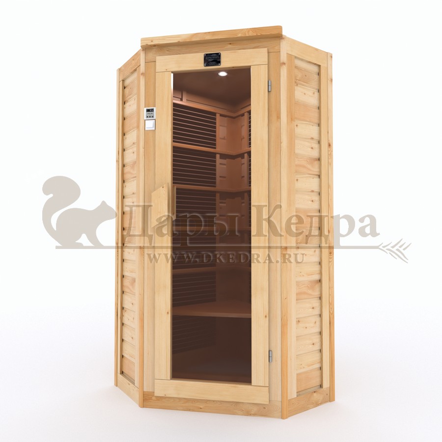 Одноместная угловая инфракрасная сауна кабина из кедра и липы с карбоновыми излучателями Это специально оборудованная кабина из липы для прогрева тела человека сухим теплом. Воздух в таких парных не нагревается. Инфракрасные лучи воздействуют на тело, равномерно прогревая мышцы, суставы и органы. Карбоновые излучатели, встроенные в стены кабины, обладают мягким прогревом, что полностью исключает возможность ожога. Работает кабина за счет электричества. Установка сауны в угол, позволяет рационально использовать пространство помещения. Подходит как для домашнего использования, так и для коммерции. Обращаем Ваше внимание что в стандартную комплектацию входит трапик для ног, но вы можете его заменить на цельный пол совершенно бесплатно!