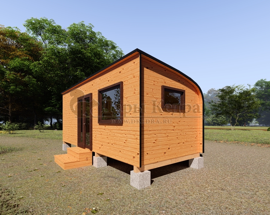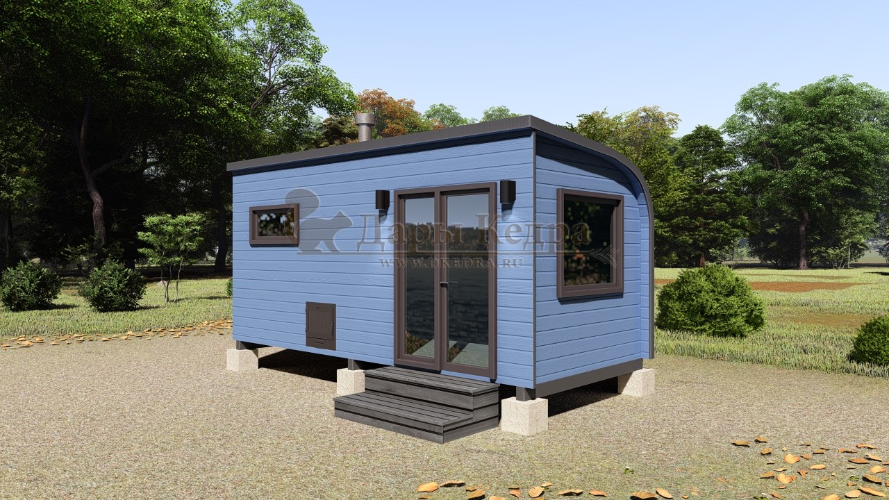 Симбиоз круглой и квадратной бани-бочки. Разработано с учётом эргономики, в ней так же просторно, как и в квадро-бочке, но при этом полукруглая крыша не дает задерживаться снегу и влаге на кровле. А еще такая баня безусловно красивая, мобильная и доступная каждому!