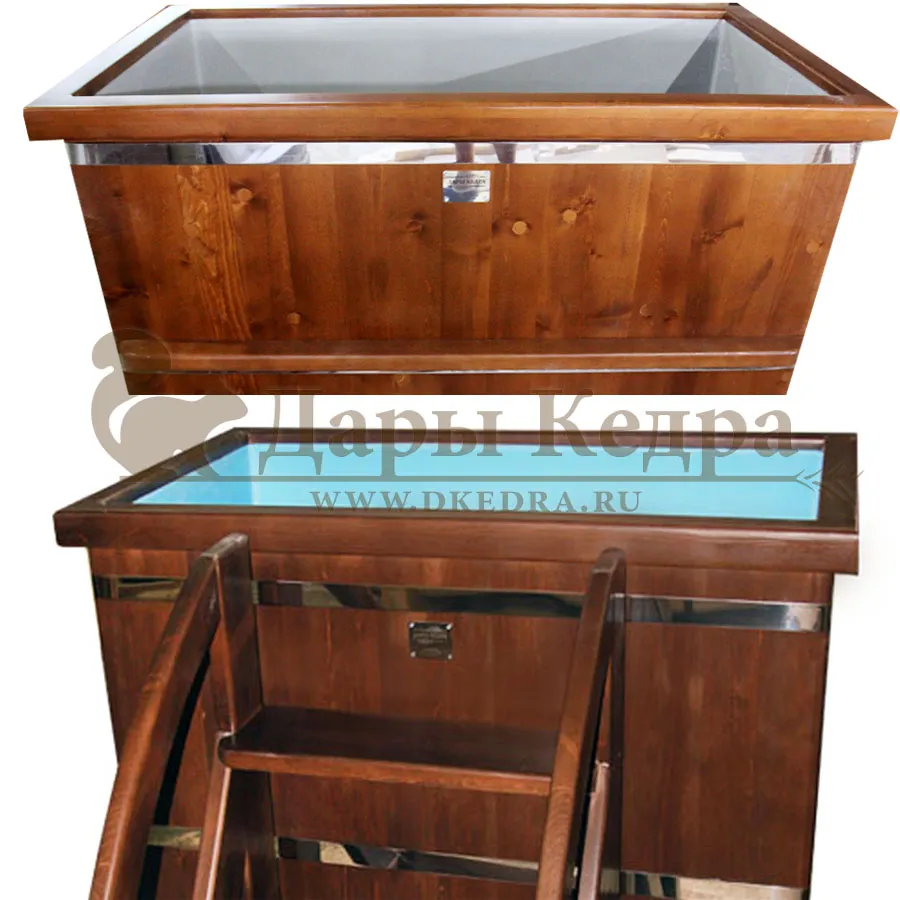 Бондарная прямоугольная купель из кедра с пластиковой вставкой