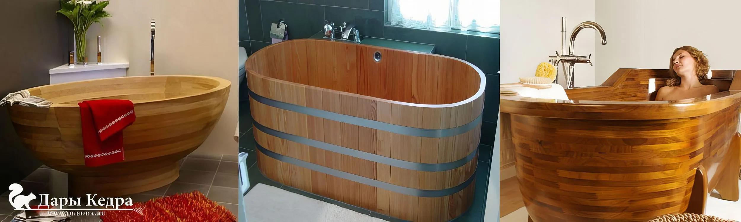 - Кедр не зря используют при судостроительстве. Древесина твёрдой породы отличается красивой структурой и благородным оттенком. Она не подвержена гниению, выдерживает долгое воздействие влаги и температуры. Практически не даёт усадки, не коробится и не трескается. Поэтому ванна при правильном уходе прослужит вам много лет.
