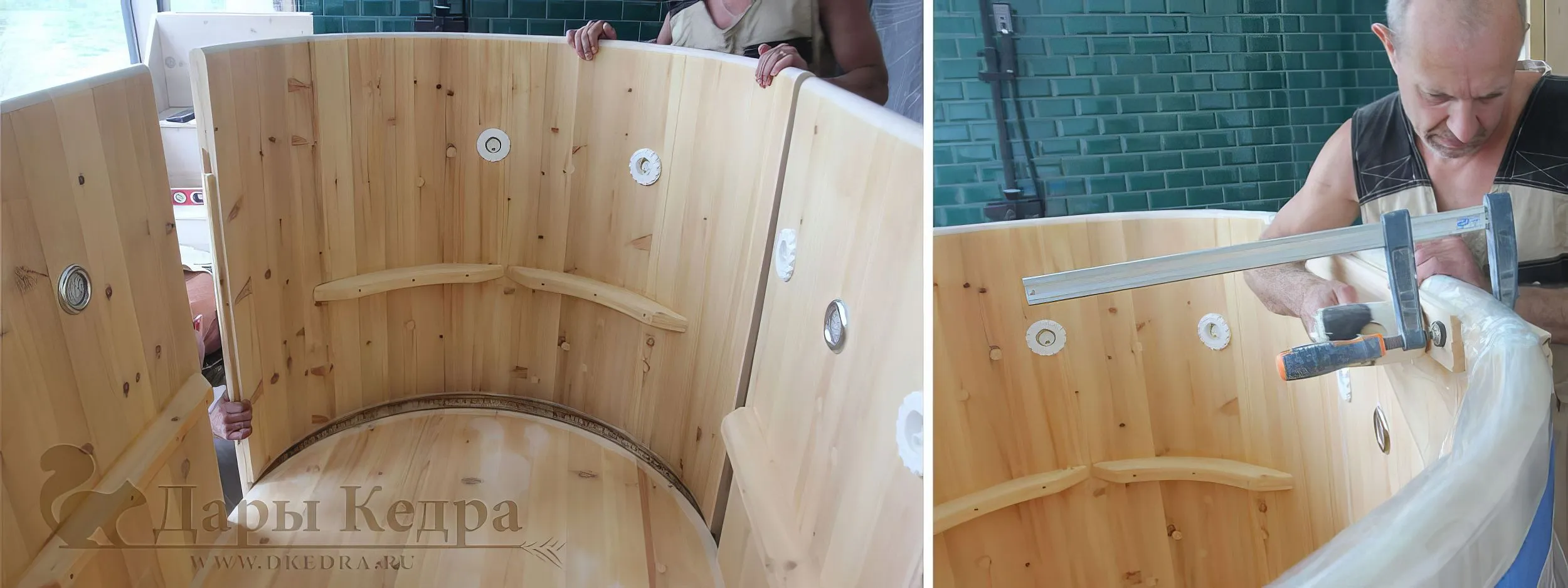 Купели из кедра могут быть разных форм и размеров: круглые, овальные, угловые, прямоугольные и квадратные. Каждая форма и размер предполагает свою схему сборки. Изделие доставляется в собранном виде, стянутая обручами. Перед началом сборки необходимо разобрать купель, занести по частям в помещение, где будет в дальнейшем она установлена, а далее осуществить сборку по месту.