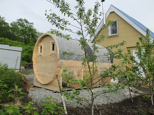 Баня-бочка - отличный вариант для дачи! Всё просто: сходил в огород, потом баньку затопил, помылся и пошел домой попить сладкого ароматного чая. Для здоровья просто супер! То, что нужно после тяжелого трудового дня. Топится банька совсем недолго, около 30-40 минут всего. Рекомендую тем, кто не хочет заморачиваться со строительством бани! Такую модель можно ставить просто на подготовленную ровную поверхность, я заранее оборудовал место. Когда баню привезли, ее просто поставили и всё-никаких заморочек! Советую.