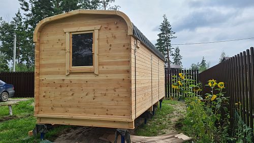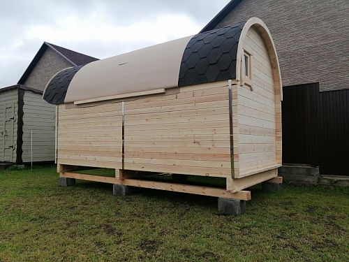 Такая баня-отличный вариант для тех у кого мало места на участке. Она компактная и вместительная. Быстро топится, что тоже очень практично и экономно. Жар хороший стоит. В общем, функции свои выполняет и по цене доступно. Спасибо, рекомендуем.